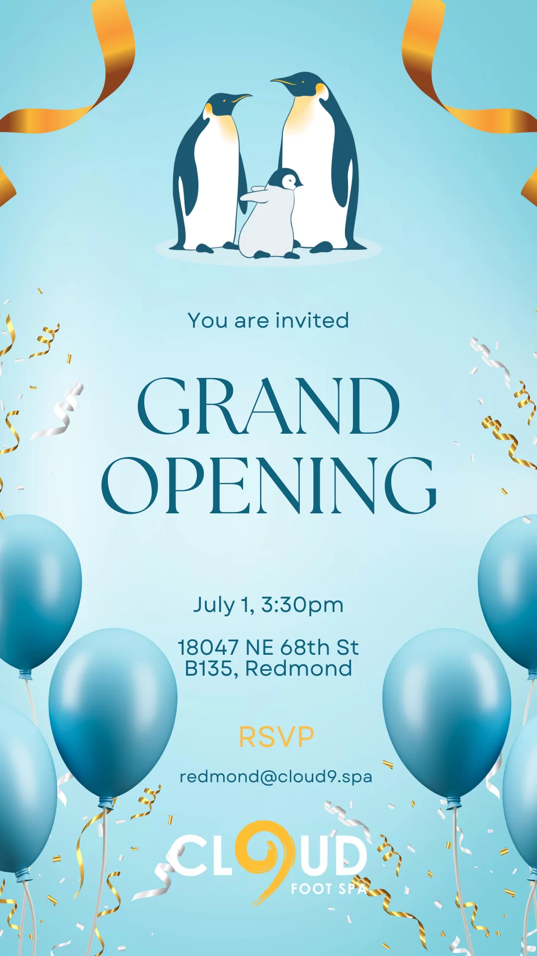 Join us for the Grand Opening of Cloud 9 Foot Spa in Redmond, WA